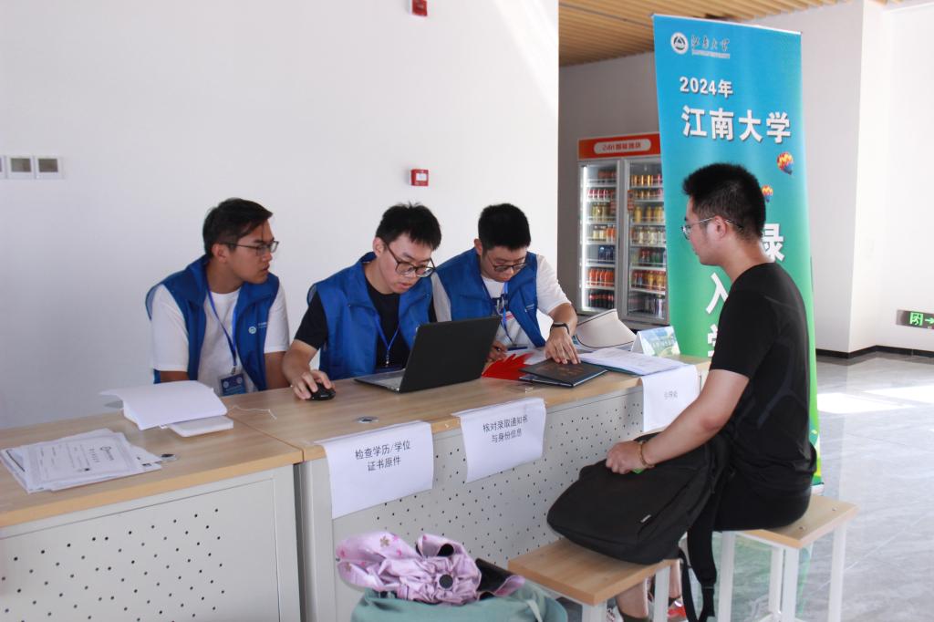 报到当天,学院大厅和宿舍园区都安排了服务点,为新生提供充满爱心、热心、暖心的服务。在学院大厅,志愿者分工明确,井然有序,严格按照学校工作要求依次进行证书核对、身份验证、材料提交等环节,帮助同学们“丝滑”入学。学院精心为新生准备了入学大礼包,研究生手册、心理手册助力新生及时熟悉规章制度,提前谋划学业,有效应付情绪变化;印有学院标识的文件袋和徽章擦亮了新生“集电学子”的身份。大厅外,学院制作生动有趣的拍照道具,新生们纷纷打卡留念,将与学院的第一张合影小心翼翼的贴在照片墙上并在留言板写下入学感受。在宿舍园区,学院志愿者提前准备了帐篷、饮用水和推车等物资,及时为远道而来的新生送上关心,遇到行李比较多的同学,志愿者不顾炎热天气,一趟趟帮忙运送行李,用行动彰显集电学子勤劳、友爱和坚韧。
