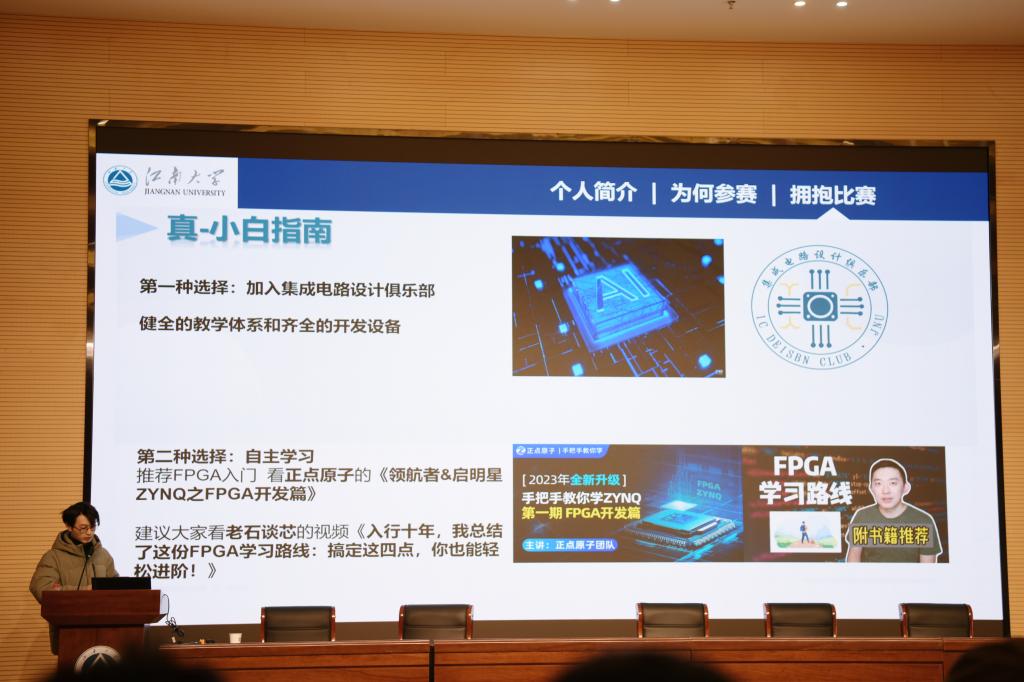 张赵炜同学以自身丰富的参赛经历为例,生动讲述了从组队筹备、选题设计到作品制作、答辩展示的完整参赛流程。他详细剖析了每个环节的关键要素,包括如何高效团队协作、如何精准选题定位、如何克服技术难题等,为学弟学妹们提供了宝贵的实战经验和策略建议。