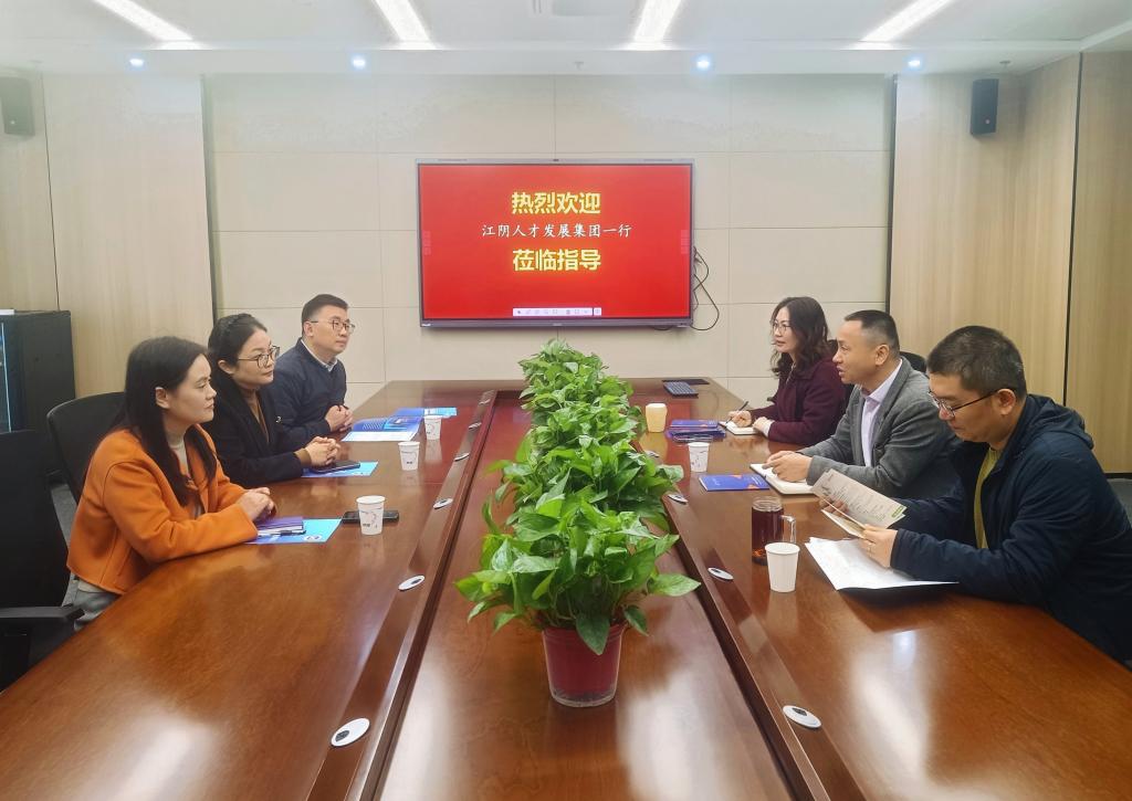 会上,耿向阳对江阴市人才发展集团一行表示热烈欢迎。他指出,学院高度重视人才工作,期望在暨阳英才计划申报、教师成果转化、学生留锡留澄就业等方面进一步加强交流互动,推进校企平台建设,深化政产学研协同育人。顾晓峰从学院学科平台、学位点设置、科研方向等作学院介绍,重点交流了学院2024年以来与行业重点企业在联合申报省市重点实验室、省市创新联合体等方面的进展,期待通过人才发展集团“牵线搭桥”,进一步服务好江阴行业企业,促进校政企创新链、产业链、人才链深度绑定。