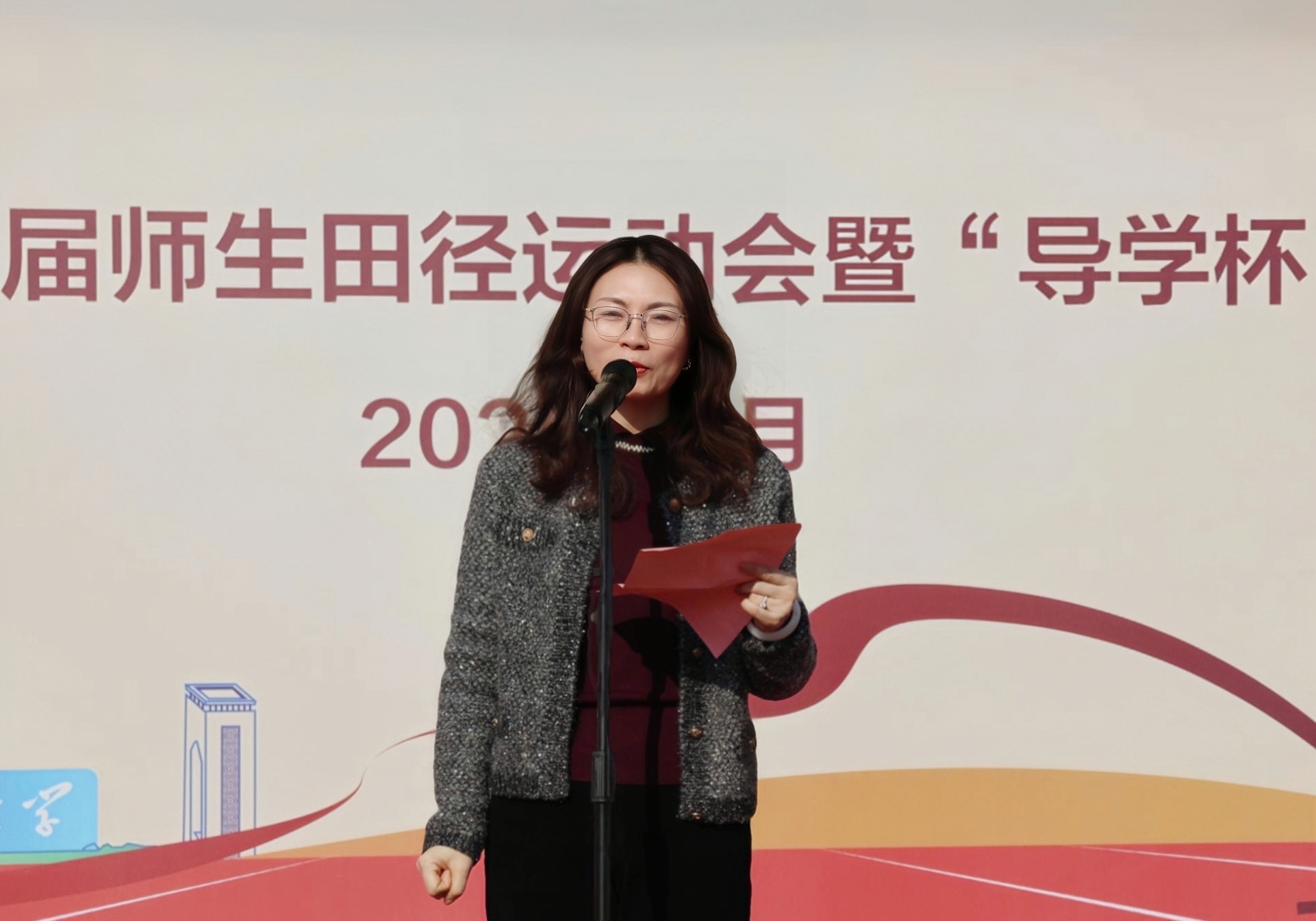 在裁判员代表和运动员代表分别宣誓后,糜海燕宣布运动会正式开幕。