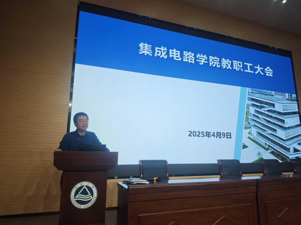 学院院长顾晓峰对近期科研项目申报情况进行了通报,着重指出要充分借助无锡集成电路产业的地域优势,强化与企业的合作,从多维度拓展科研合作渠道,推动科研工作迈向新高度。他还讲到,高层次人才引进对于学院发展至关重要,动员全体老师深度挖掘、积极联系、推荐吸引高层次人才加入学院。此外,他还传达了学校和学院针对年度考核和津贴方案的新举措,希望老师们扎实开展教学科研工作,切实履行教师职责,积极投身学院事务。
