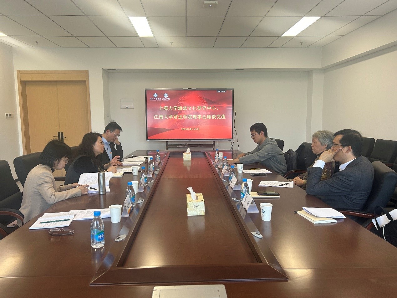 4月25日下午,上海大学海派文化研究中心到访,与君远学院理事会成员在江阴霞客湾校区智能制造学院B218会议室,围绕共同举办“香江之珠-东方明珠-太湖明珠”港沪锡三地大学生交流项目的讨论,举行了一场富有成效的座谈交流。上海大学海派文化研究中心副秘书长竺剑、研究中心成员张旭、李银等,唐君远文化研究会学术委员会主任、君远学院理事会理事王武、理事王冰、徐静、蒋毅等参加会议,双方就如何规划融合科技与文化元素的教育实践交流活动展开了深入讨论。