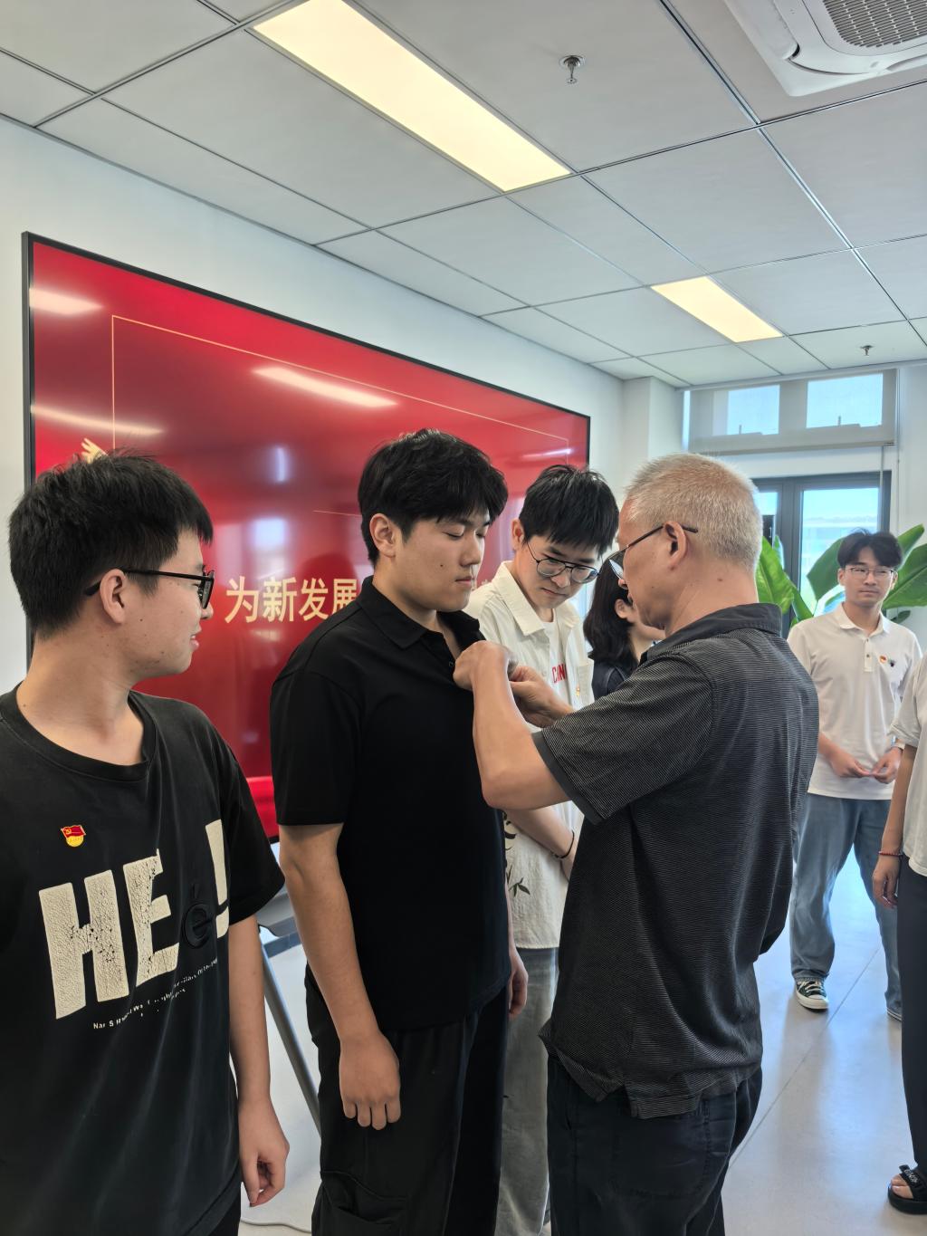 为新党员佩戴党员徽章