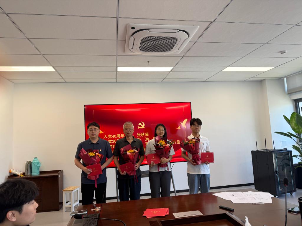 仪式第一阶段在雄壮的《国际歌》声中拉开序幕。首先举行的是党员集体政治生日仪式,新发展党员为党龄逢5倍数周年的8名师生党员献上了节日贺卡与鲜花。徐静宣读新发展预备党员名单,并在党旗面前领誓,全体党员右手握拳,面向鲜红党旗庄严宣誓,铿锵誓言彰显了为党的事业奋斗终身的坚定决心。过党员生日的师生党员为12名新党员佩戴党员徽章,象征着党的光荣使命代代传承。