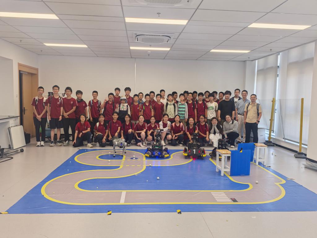 来访师生与机器人赛队合影