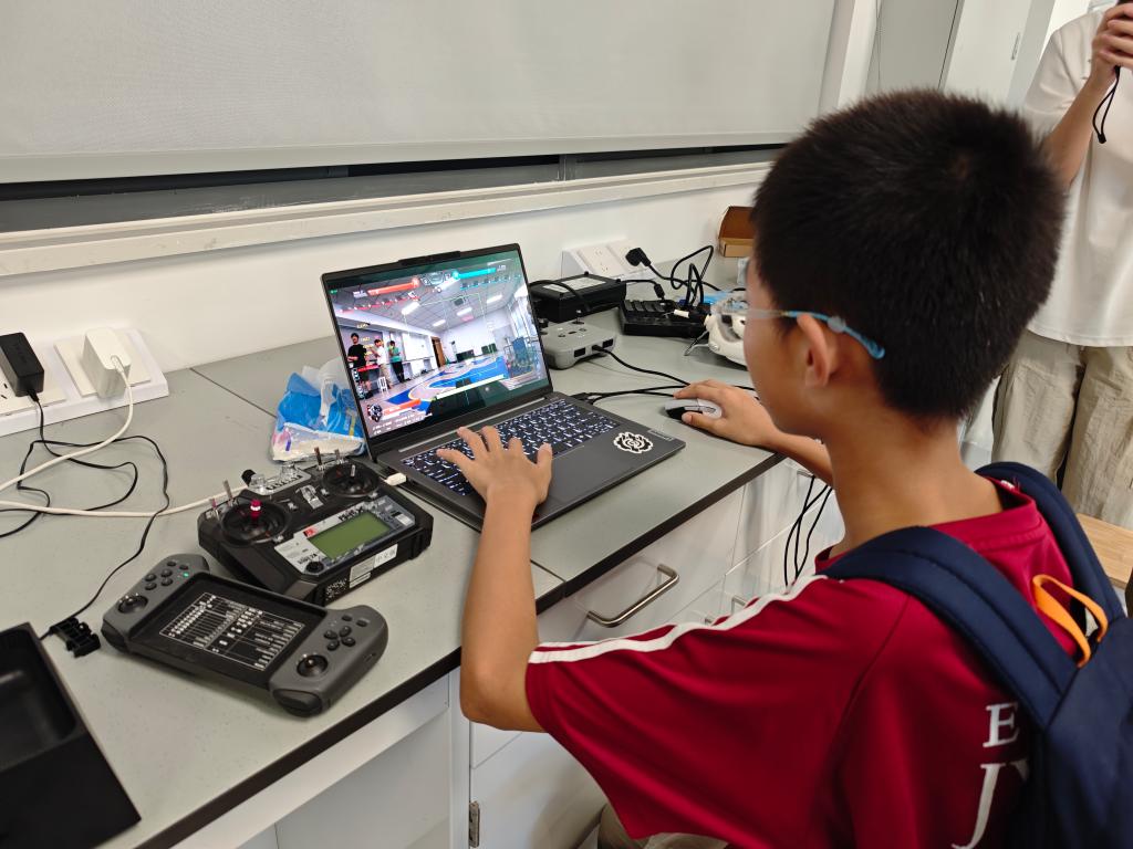 同学体验操作“英雄机器人”