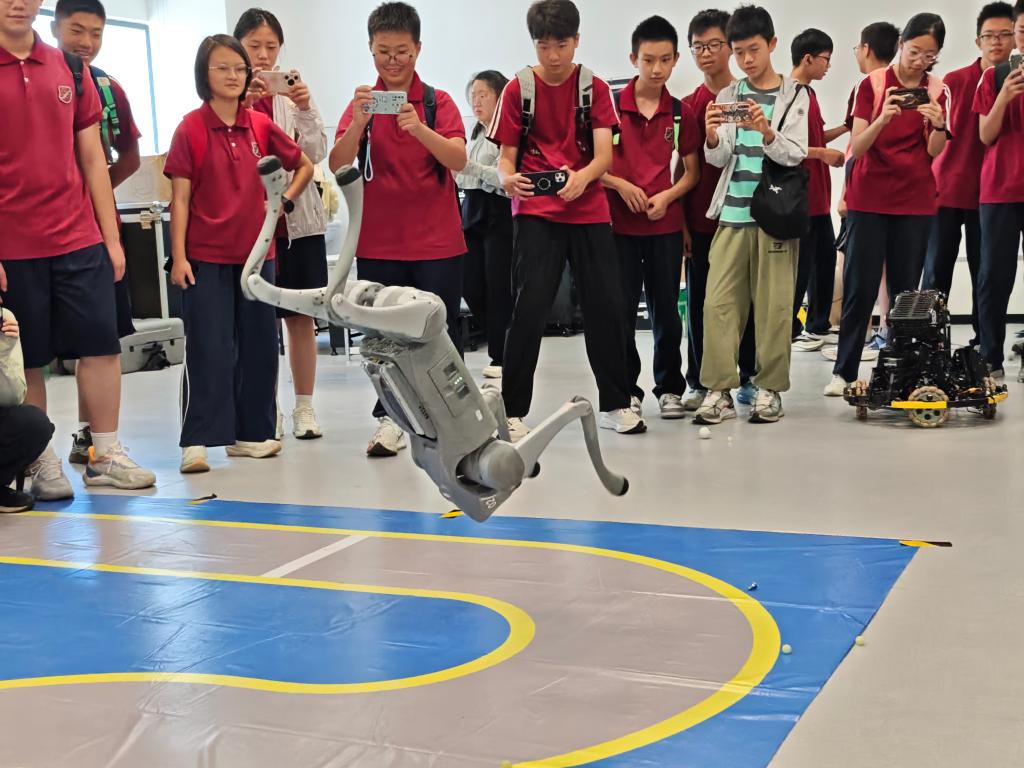 研学活动在同学们心中播下了追求卓越、探索未知的种子。来访同学蒋瀚霖说:“今日研学走进江南大学,错落楼宇间跳动着科技的脉搏。机器狗循指令跃动,转身间似有灵慧;机器人在操控下进退攻防,AI系统助它们精准避障、展开对决,金属躯体的碰撞比虚拟场景更震撼。”同学韩墨说:“这次参观江南大学,是我收获满满的一次研学。我目睹了战队自主研发的机器人激烈对抗,它们灵活走位、精准射击,每一次进攻与防守都展现出技术创新的魅力,让我深刻感受到机器人科技的前沿力量。”
