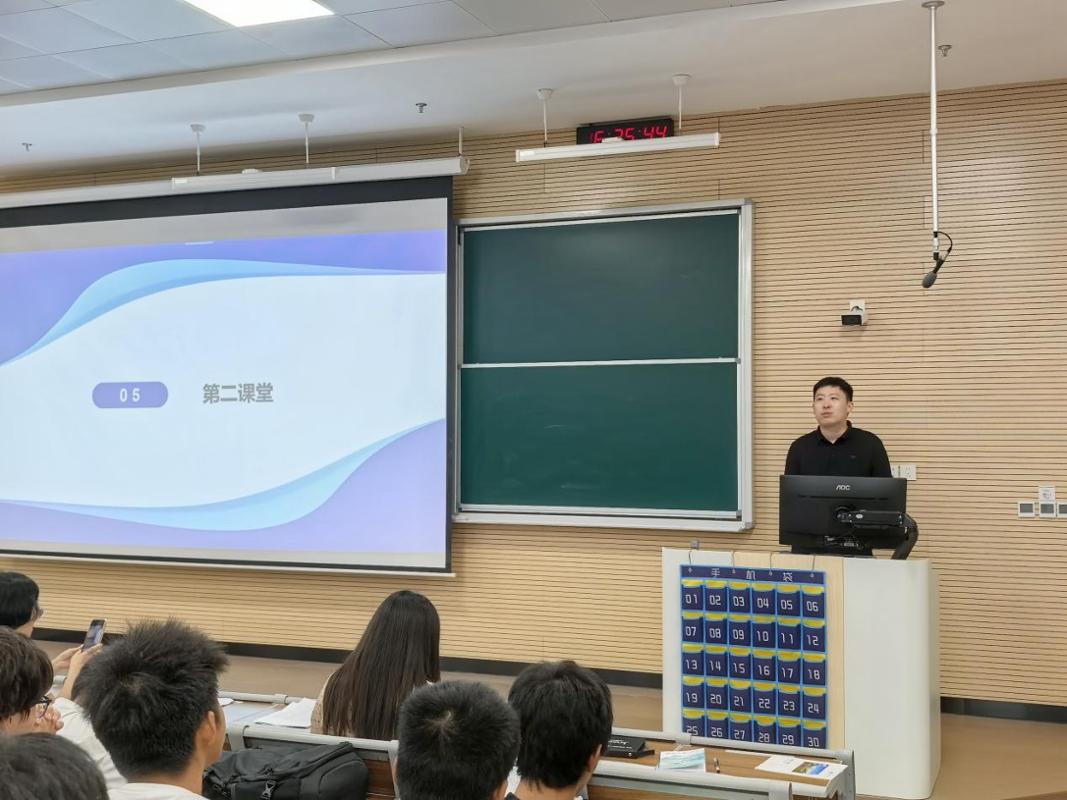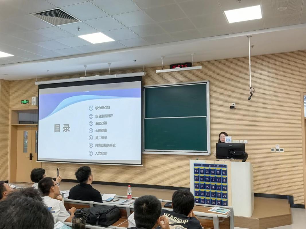 高鑫则聚焦于学生的综合素质拓展。他生动介绍了“第二课堂”的丰富内涵与参与方式,鼓励同学们在课余时间积极参与社会实践、志愿服务和文体活动,提升综合能力。同时,他还列举了学校竞赛目录和学院重点支持的各类学科竞赛,激发了同学们的浓厚兴趣。最后,他就团组织关系转接的具体流程和注意事项进行了清晰指导,确保新生们的党团组织关系能够顺利衔接。
