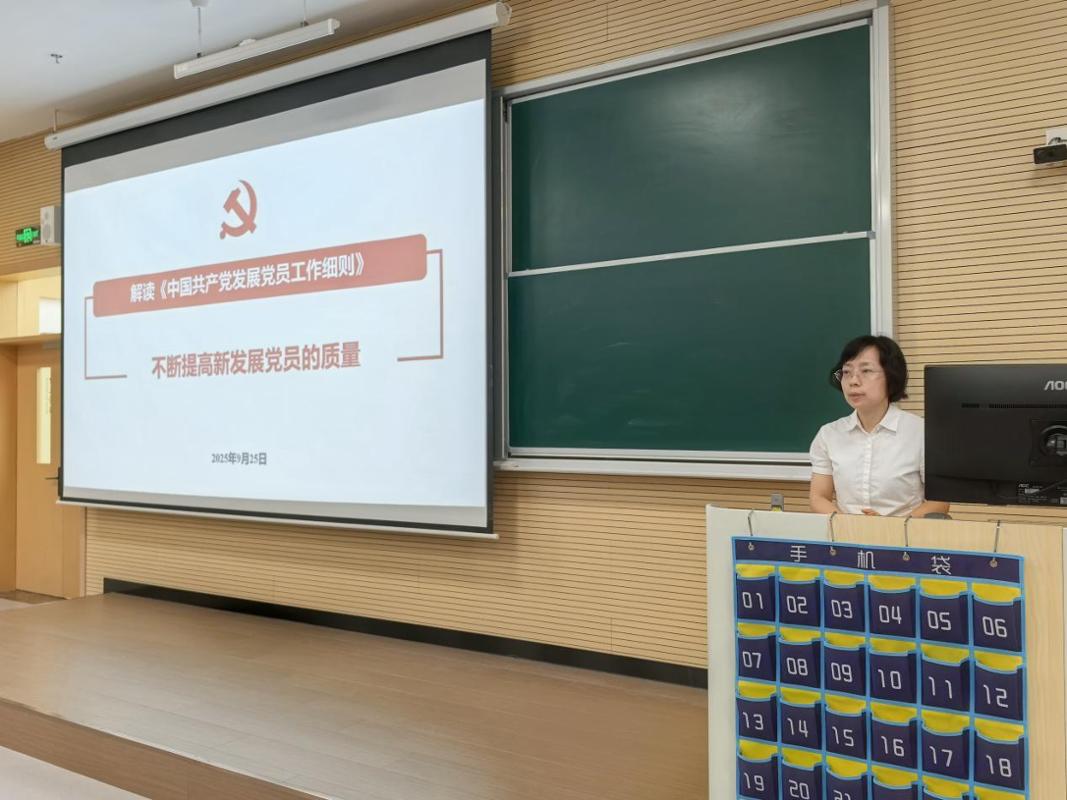 最后,徐静为全体新生带来了一堂深刻而富有教育意义的入党启蒙课。她阐述了中国共产党的性质、宗旨以及青年大学生积极向党组织靠拢的重要意义,引导同学们树立远大理想。此外,她还就入党申请书的撰写要求、思想汇报的注意事项以及党员发展的基本流程进行了具体指导,鼓励有志青年主动学习党的理论知识,提高思想觉悟,争取早日加入党组织,为国家和民族的发展贡献青春力量。
