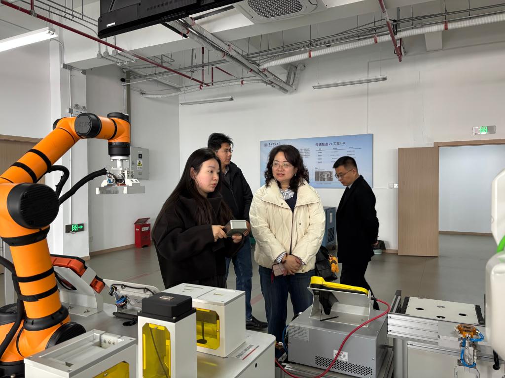 双方就学科建设、科研管理、人才培养、学生服务等方面开展了深入探讨。王冰一行实地参观了南京理工大学数字创新港人才培养实验室,亲身感受了校地产学研创新基地的设施与环境。