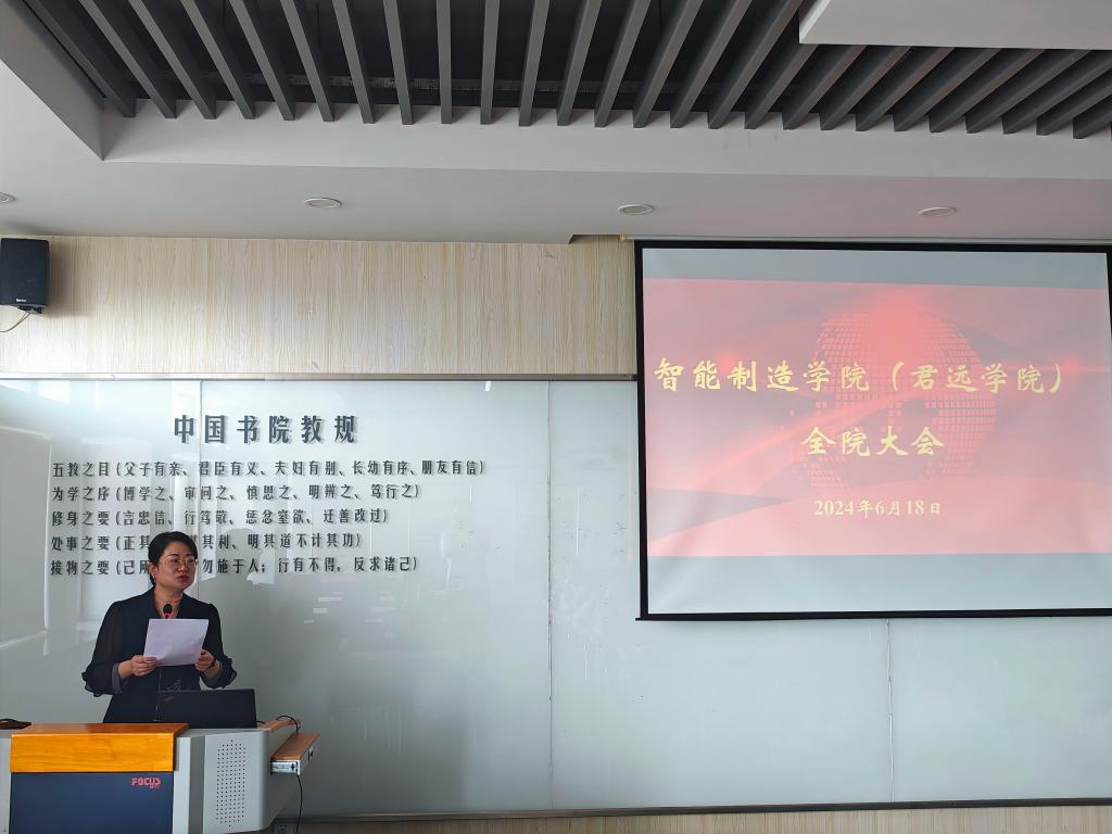 6月18日下午,智能制造学院(君远学院)召开第一次全体教职工大会,传达学校有关会议精神,介绍学院发展规划,部署近期重要工作。会议由学院党委书记王冰主持。