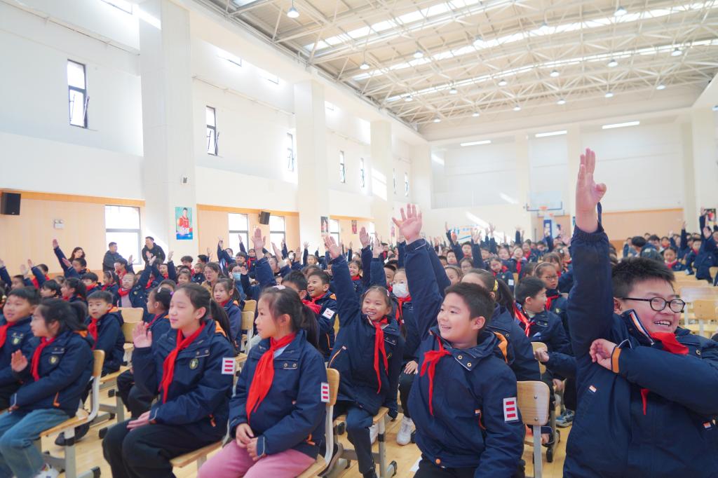 活动伊始,江阴青阳金桥实验学校的少先队员们为远道而来的志愿团成员们系上了鲜艳的红领巾。不仅拉近了双方的距离,更让志愿团成员们感受到了孩子们纯真的热情与期待。