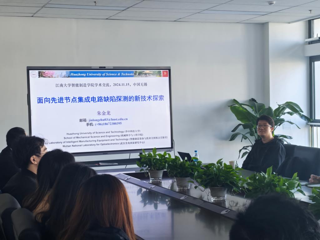近日,华中科技大学机械科学与工程学院朱金龙教授应邀来智能制造学院访问交流,为师生做了“面向先进节点集成电路缺陷探测的新技术探索”的学术报告。报告由宿磊副教授主持,学院师生代表50余人参会交流。