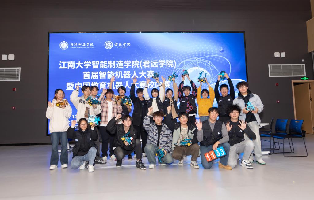 12月20日下午,江南大学首届智能机器人大赛暨中国教育机器人大赛校内赛在霞客湾校区成功举行。本次大赛在江阴校区管理办公室、教务处和校团委的大力支持下,由智能制造学院(君远学院)主办、中国大学生教育机器人大赛组委会协办。智能制造学院党委书记王冰,校教务处副处长王小燕,江阴校区管理办公室副主任刘虹,校团委副书记吴垚,智能制造学院党委委员蒋毅、大学生科创中心主任宁萌出席活动。江苏省南菁高级中学、江苏省江阴高级中学、江阴市第一中学、江阴市青阳中学和江阴长泾中学的领导、师生代表观摩比赛。开幕式由智能制造学院党委副书记徐静主持。