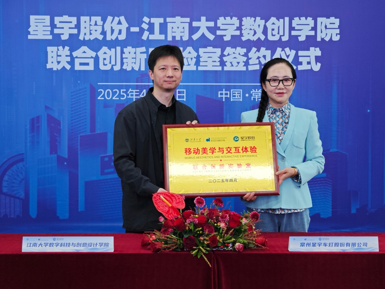 4月28日,江南大学数字科技与创意设计学院(以下简称“数创学院”)与常州星宇车灯股份有限公司(以下简称“星宇股份”)战略合作框架协议签约仪式在星宇股份中心报告厅举行。星宇股份董事长周晓萍、党委书记俞志明,副总经理研究院院长林树栋,副总经理李钢,造型组组长蒋庆琏以及数创学院院长曹鸣、智能交互设计系主任沈杰、包力源等多位教师出席签约仪式。仪式由林树栋副总主持。