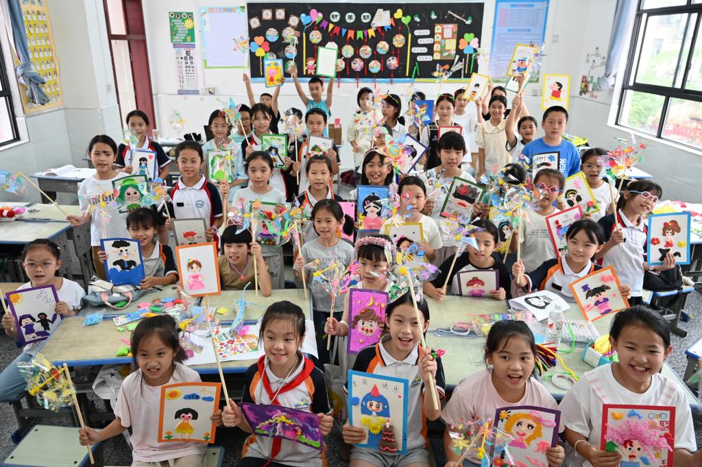 从江县丙妹镇中心小学的教室墙上,贴满了孩子们画的蜡笔画。这里600多名学生中,80%是留守儿童,由于专业美术教师短缺,学校美育课程相对单一,实践团队精心设计了“色彩心理学”“奇幻实验室”“环保创意秀”等美育主题课程,通过互动体验式教学,激发孩子们的艺术兴趣和创造力。