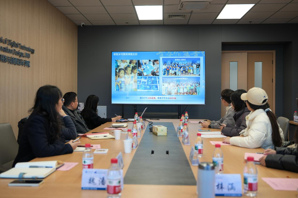 会议紧扣“学深悟透习近平总书记重要回信精神,展现数创青年服务中国式现代化新作为”主题,共分为领学、汇报、交流、点评四个环节。首先,唐可文选取三封习近平总书记给中国农业大学科技小院同学们、中国国际大学生创新大赛学生代表、天津大学全体师生的回信,带领与会人员深入研学了习近平总书记重要回信精神的核心内涵与时代意义,围绕“走进乡土中国深处”“自找苦吃”等关键词,深刻阐释了新时代青年应具备的精神风貌与使命担当。随后,研究生党员张澜杰分享了学生党员发起、组织参与的学院社会实践品牌“手指上的中国”社会实践项目,展示数创青年将理论学习转化为服务社会的实际行动。本科生党员李乐心汇报了校地合作项目“D-light”数智乡村美育创享计划的实践成果。通过AR导览、乡村墙绘、非遗美育课程、数智研学路线等一系列案例,呈现了支部党员在服务乡村振兴、推动文化传播方面的积极探索与扎实实践。在交流研讨环节,党员们围绕“数智报国”与“青年作为”主题展开热烈讨论,分享将专业学习与社会服务相结合的心得体会。