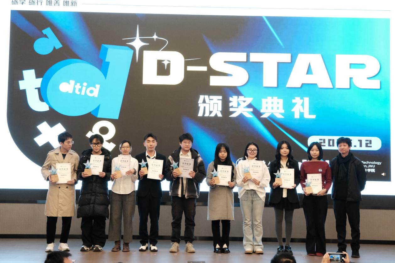经综合评审,许子佳等9名同学获评“D-star”2025年学生年度人物,数创学院研究生会获评“D-star”2025年先进集体,林文静等2名同学获学生年度人物提名奖,数字媒体艺术2402班级(徐霞客特称团支部)获先进集体提名奖。