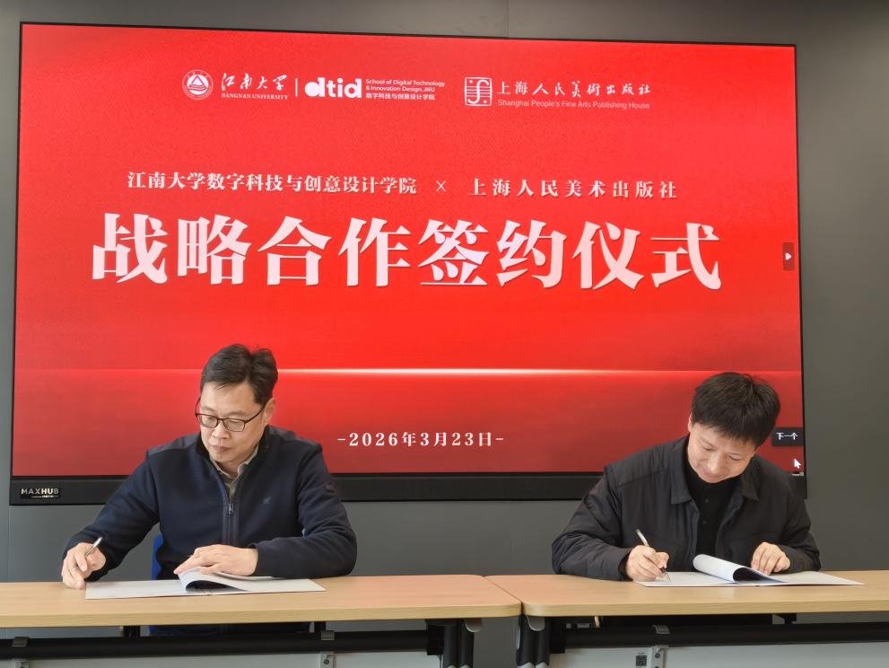 3月23日,数字科技与创意设计学院与上海人民美术出版社战略合作签约仪式暨“生活·艺术·人民——年画、宣传画里的新中国百姓生活”展览开幕活动在霞客湾校区举行。上海人民美术出版社社长、党委书记侯培东,数字科技与创意设计学院师生代表出席活动。