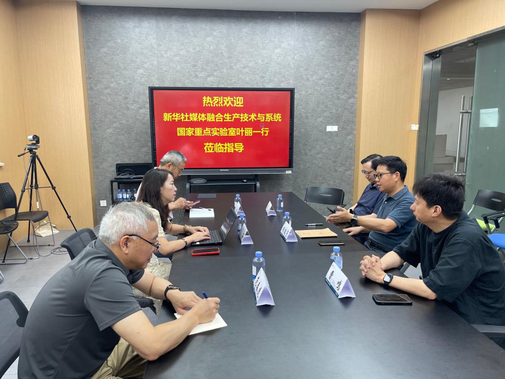 6月26日,新华社媒体融合生产技术与系统国家重点实验室5G融媒体应用研究中心主任助理叶丽一行来校调研。无锡日报报业集团原总编辑马正红、无锡信电局原副局长范春虎陪同调研。数字科技与创意设计学院党委书记胡振宇、院长曹鸣、数字媒体艺术系主任章立参加调研座谈交流。