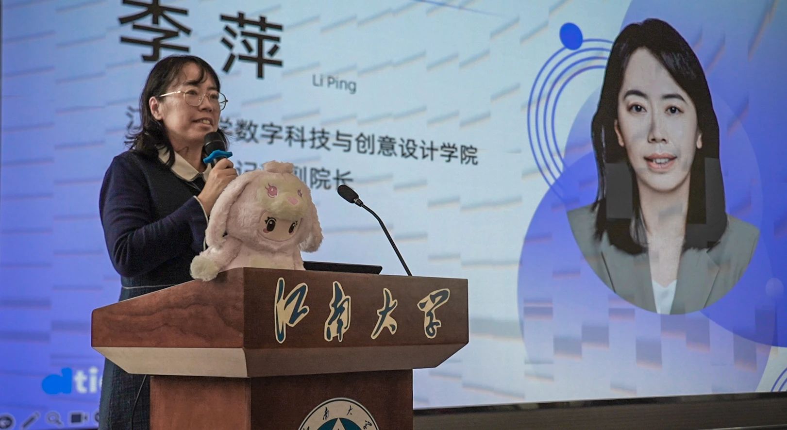 近日,“鼋梦寻星”2024年江南大学&元梦之星造梦训练营三期开营仪式在江南大学江阴霞客湾校区大学生活动中心B213顺利举行,数字科技与创意设计学院党委副书记兼副院长李萍、数字媒体艺术专业系主任章立、张明明副教授以及天美工作室UGC运营负责人叶子出席此次活动,活动由张明明主持。
