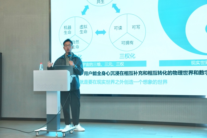 洪岩教授围绕元宇宙社交与未来时尚主题,从元宇宙的概念、特点以及基于元宇宙的未来时尚畅想三个部分,展开讲述元宇宙场景下的智能交互产品设计系统。他根据元宇宙虚拟性、高效性、去中心化和社交性的特点,以及社交元宇宙的概念,展现了他对未来元宇宙设计的畅想。