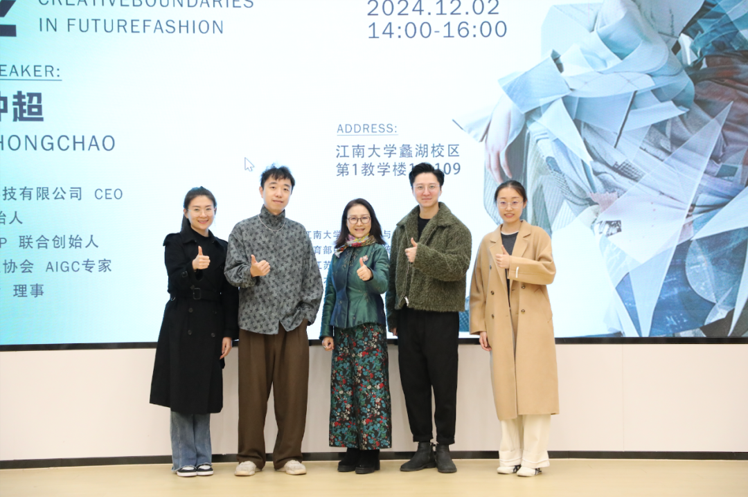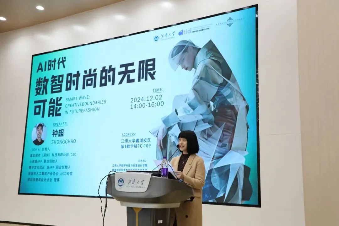 近日,基本操作(深圳)科技有限公司CEO、深圳市人工智能产业协会AIGC专家、深圳市服装设计协会理事钟超、基本操作联合创始人李瑞一行受邀在蠡湖校区举办关于“AI时代:数智时尚的无限可能”的专题讲座。活动由服装系副教授唐颖主持。