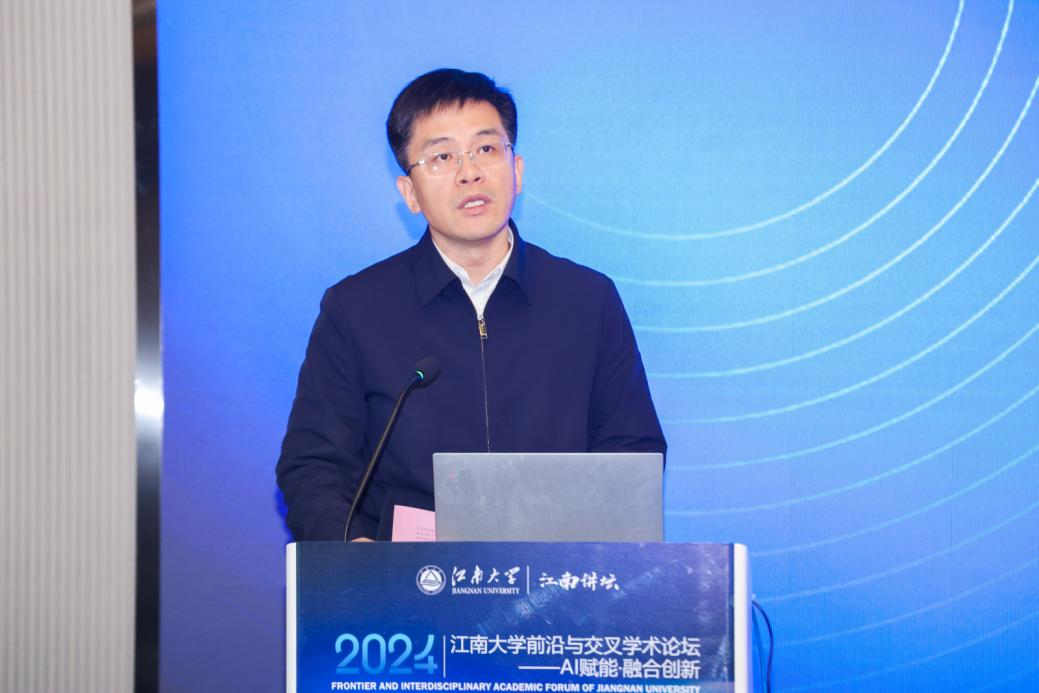 倪松涛在致词中指出,江南大学高度重视学科交叉融合在科学研究和人才培养中的重要作用,持续优化学科专业布局。此次论坛的举办对于江阴校区有关学院进一步拓宽学术视野,深化对AI赋能下的学术前沿与学科交叉创新的理解具有重要意义。陈涵杰在致词中期盼以此次论坛的成功举办为契机,聚焦创新链、赋能产业链、融合数据链,以人工智能领域最新资讯和研究成果,拓展AI赋能应用实践,驱动行业迈向智能化、数字化的新阶段,推动江阴市相关产业向新而生、向高而攀、向远而行。