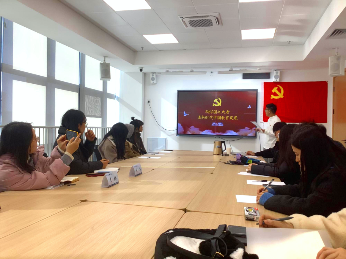 活动伊始,支部书记唐可文领学《胸怀“国之大者”,看新时代中国教育发展》专题,解读习近平总书记系列重要讲话精神。与会党员们深刻认识到新时代中国教育的发展定位与使命担当,纷纷表示要以“国之大者”为指引,将个人成长融入国家发展大局,发挥专业所长,为教育强国目标贡献力量。