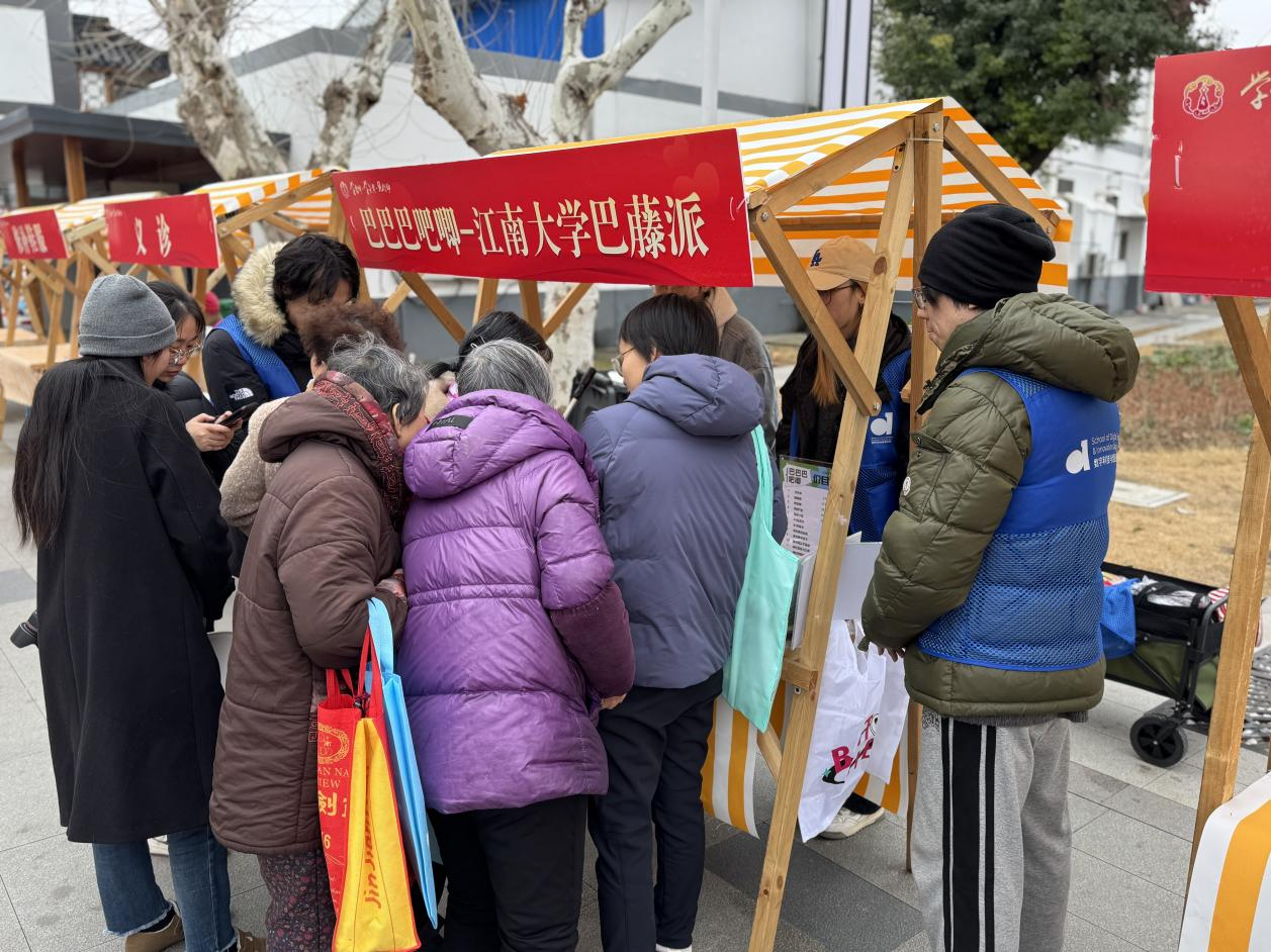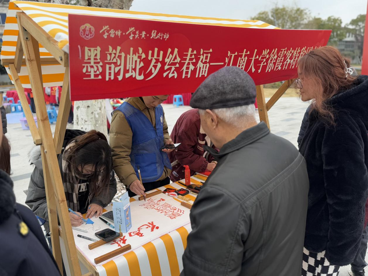 活动现场气氛热烈而温馨。团支部成员充分发挥专业特长,结合现场居民需求,个性化设计春日祝福,挥毫泼墨,写下白纸红字的祝福语,寓意美好吉祥;绘制可爱满满的卡通画,色彩鲜艳,形象生动,带来别样的惊喜。此外,同学们还展示了自主设计的品牌文创,通过吧唧物品等形式,将美好祝福传递给每一位在场的群众。这些精心准备的文创作品,不仅具有独特创意和艺术价值,更承载着青年学子的深深祝福。