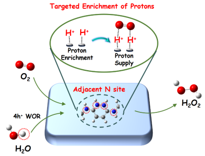 图2. 通过构建相邻的氮位点来实现质子富集,促进光合成H₂O₂