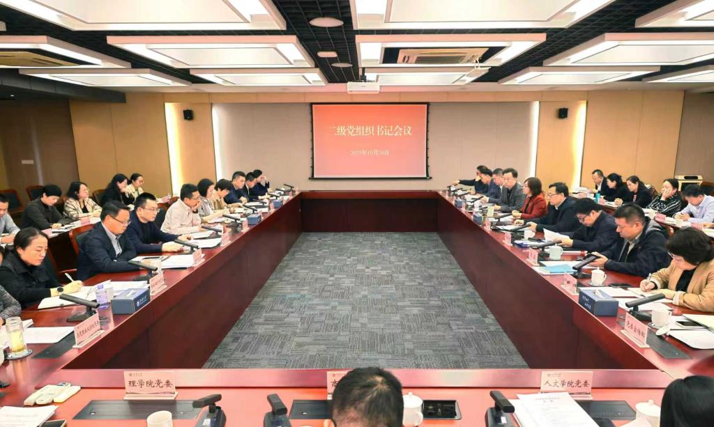 为进一步推进学校全面从严治党工作走深走实,提升学校巡视整改成效,切实增强学校各级党组织凝聚力、战斗力和创造力,10月24日下午,学校二级党组织书记会议在行政楼B307会议室召开。校党委书记吴正国,校党委副书记倪松涛,校党委副书记、纪委书记李旸,党的建设和全面从严治党领导小组的成员单位负责同志以及各二级党组织书记出席会议。会议由党政办公室主任王维主持。