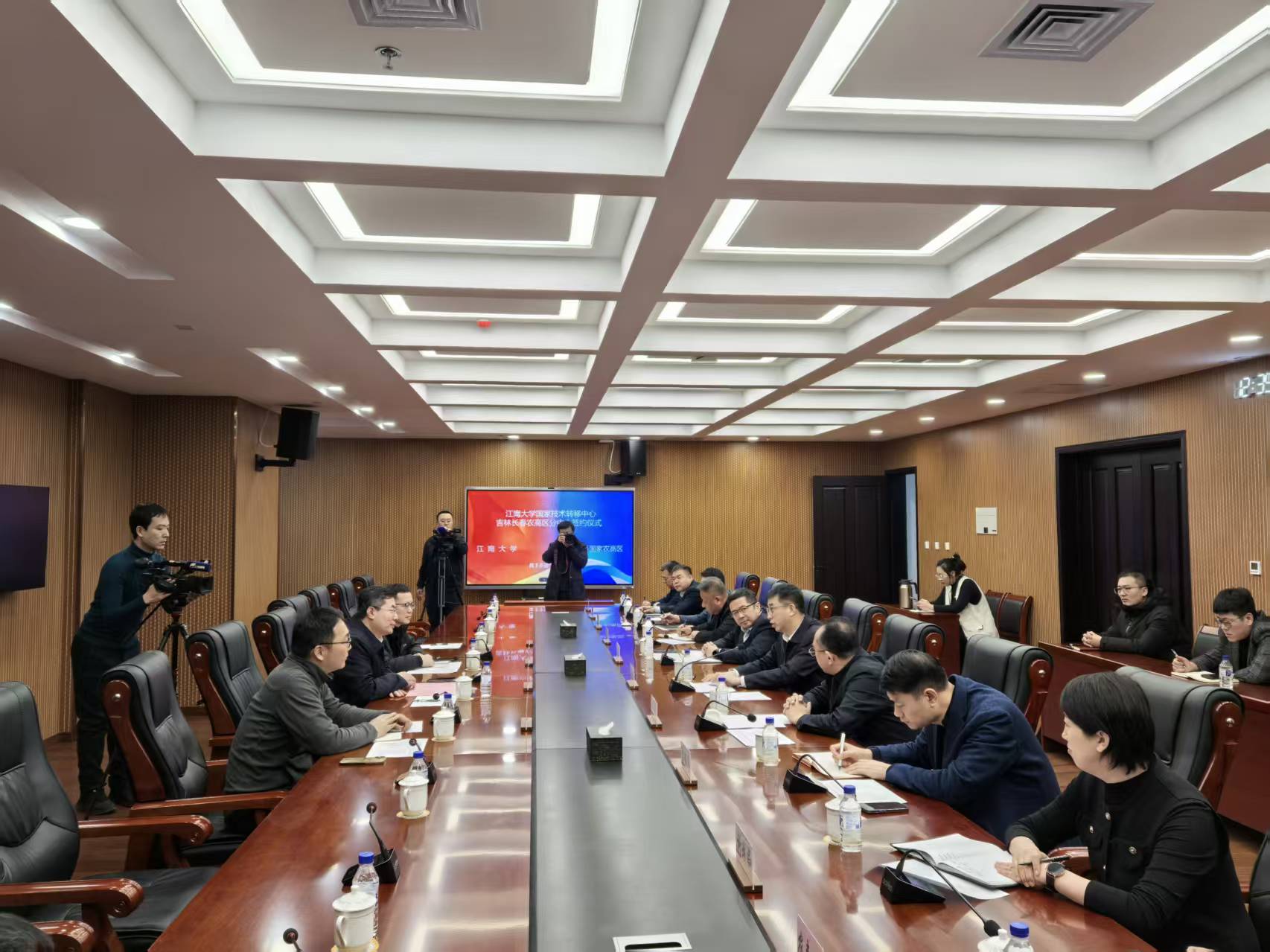 1月25日,江南大学国家技术转移中心长春农高区分中心签约仪式在吉林长春国家农业高新技术产业示范区举行,江南大学党委常委、副校长刘龙,产业技术研究院副院长彭新建,生物工程学院教授高敏杰等参加活动。公主岭市委书记、吉林长春国家农高区党工委书记赵师骐,农高区党工委副书记、管委会主任李欣、副主任王海成,相关单位负责人和企业代表等参加活动。